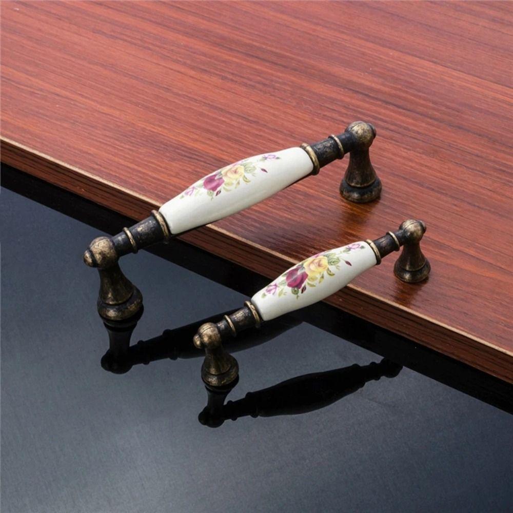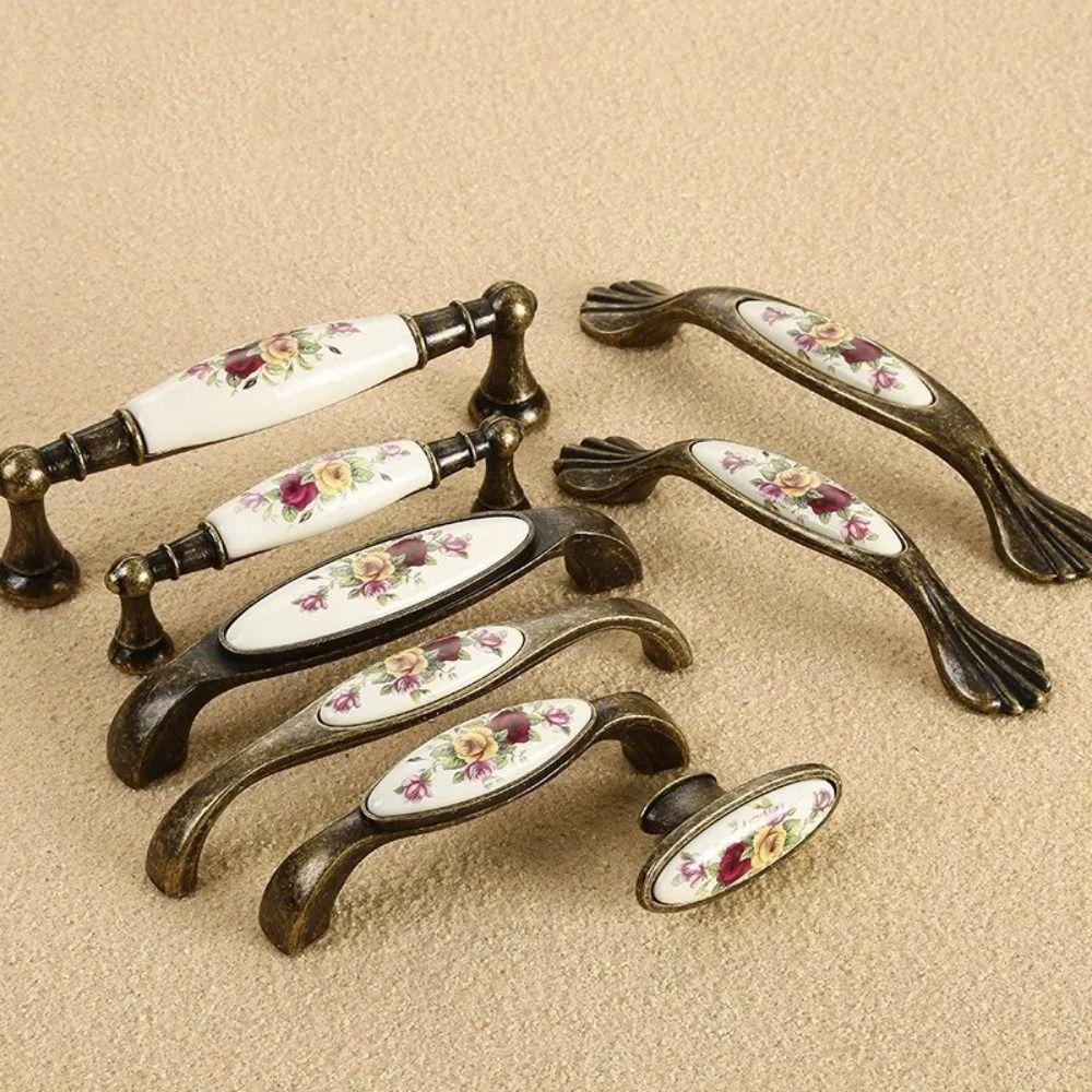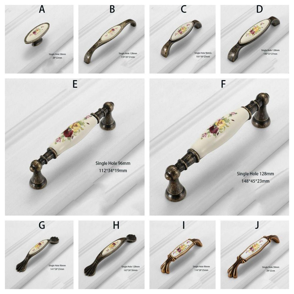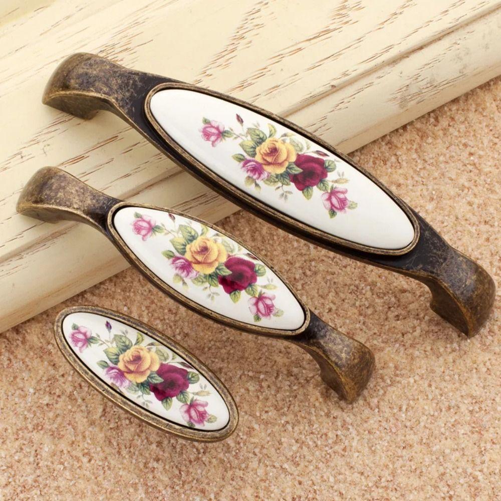 Античная бронза Ручка-кнопка для шкафа Цветок Дверные ручки Керамическая ручка Гардероб Шкаф