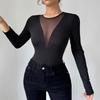 Новый женский сексуальный топ с длинными рукавами, сетчатой вставкой на груди и вырезами, однотонный