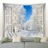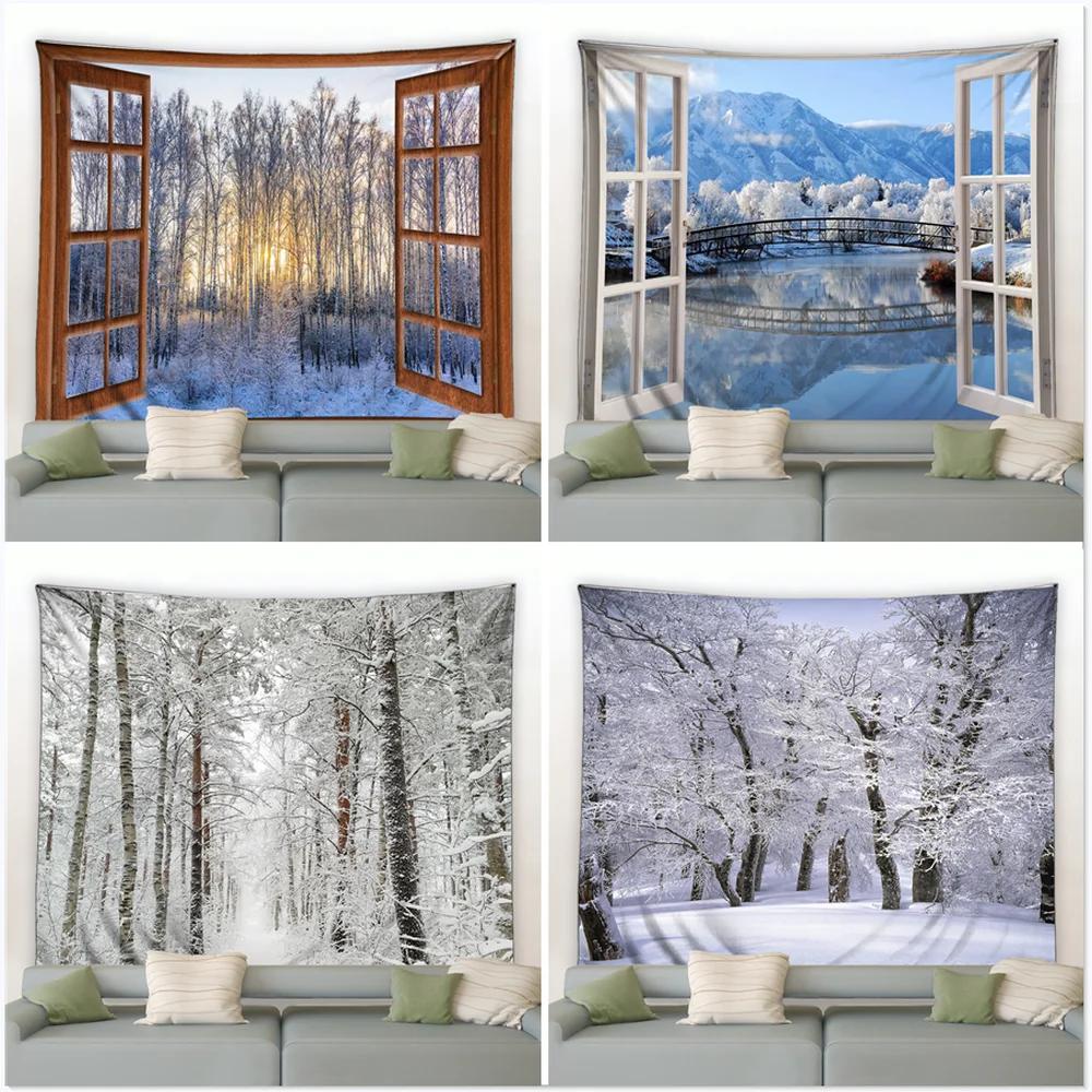 Окно Снаружи Снежинка Лес Гобелен Зимний Пейзаж Гобелены Настенное Панно Домашний Художественный Декор Плед для Спальни Гостиной