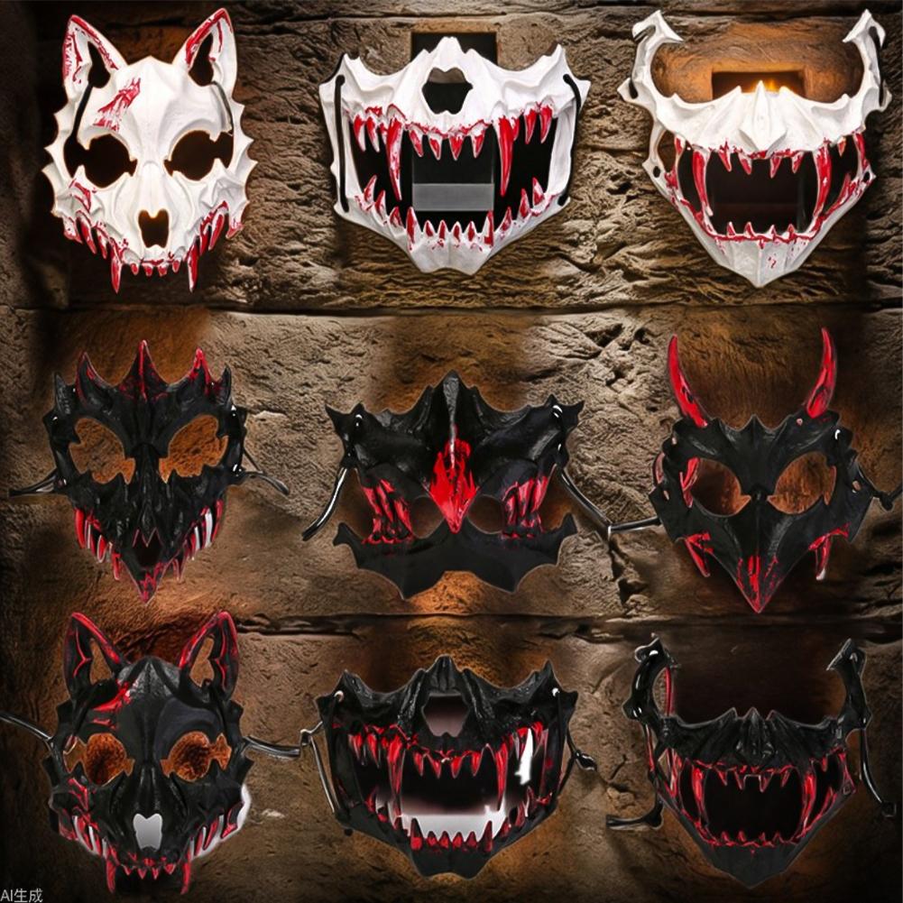 Кровавая маска на пол-лица мужская маска дракона, тигра, волка, маска ужаса на Хэллоуин, реквизит, маска скелета для карнавала, реквизит для вечеринки, косплея