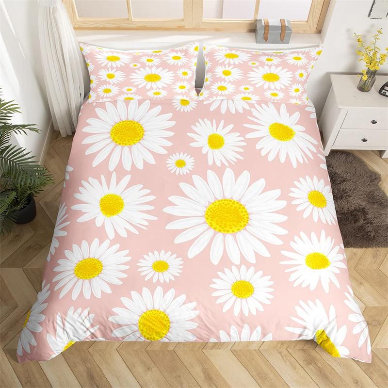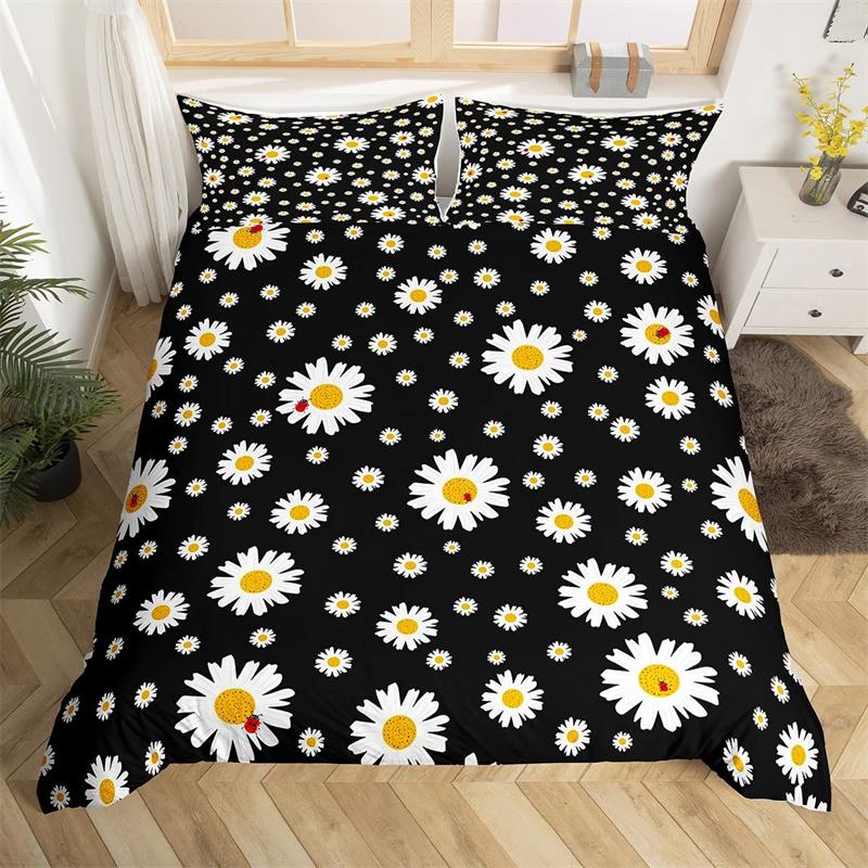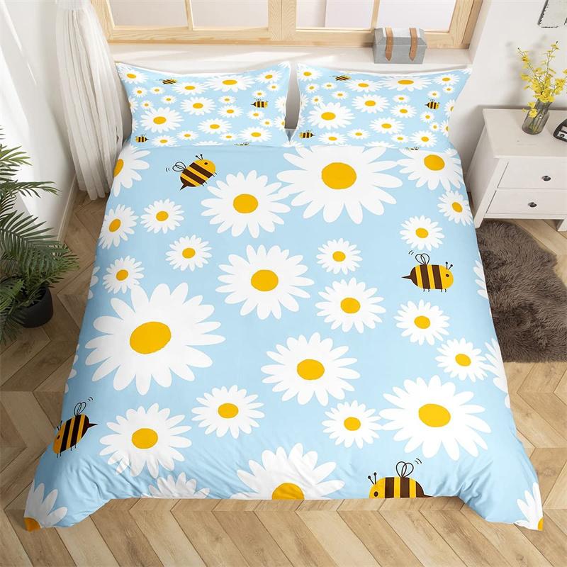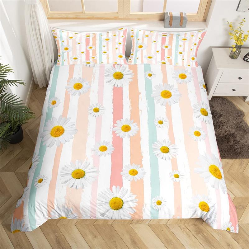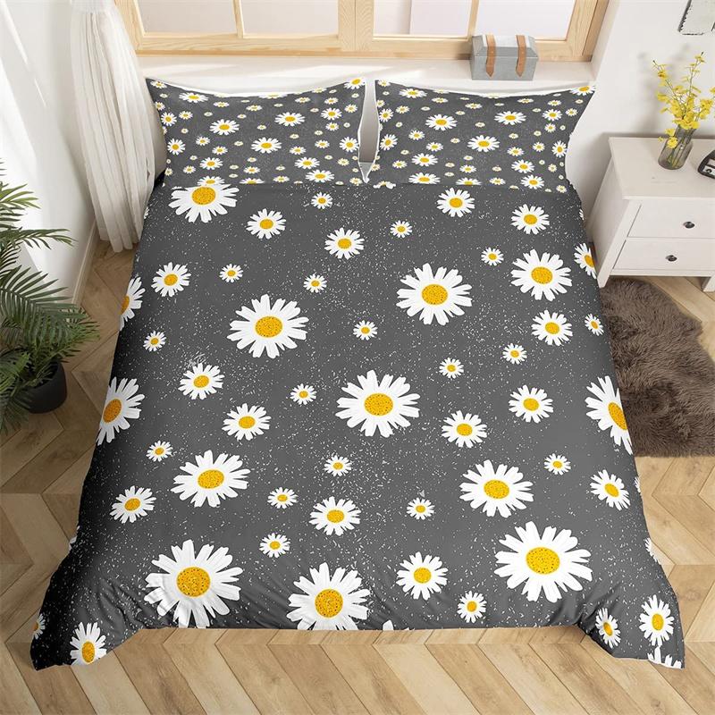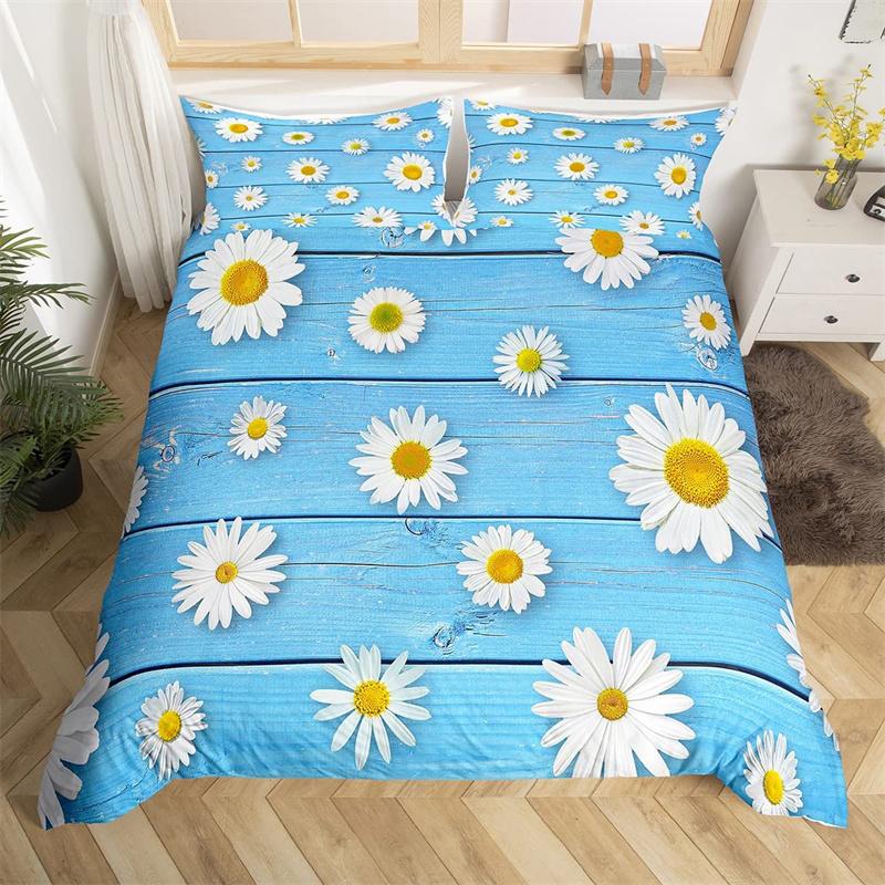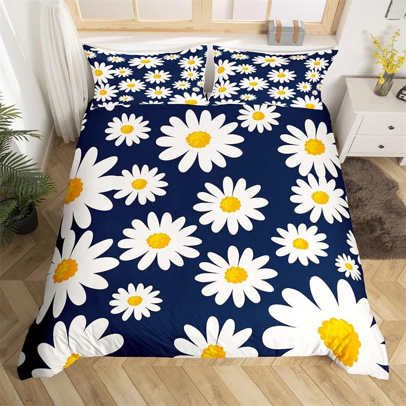 Пододеяльник с ромашками, ботанический цветочный комплект постельного белья из микрофибры с натуральным цветочным узором, одеяло, покрывало King для комнаты для мальчиков и девочек