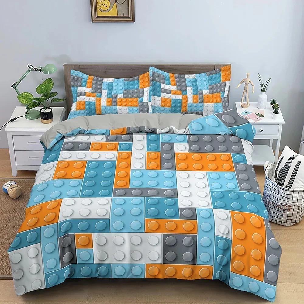 Комплект пододеяльника с 3D-рисунком из строительных блоков для мальчиков и девочек, забавный комплект постельного белья с принтом кирпичиков для спальни, геометрический прямоугольный чехол для одеяла