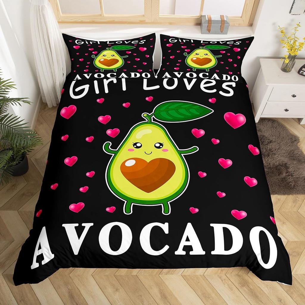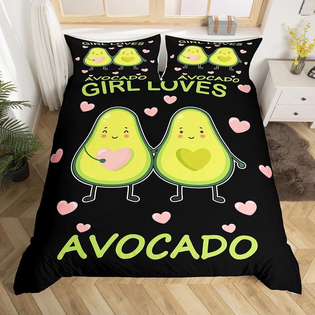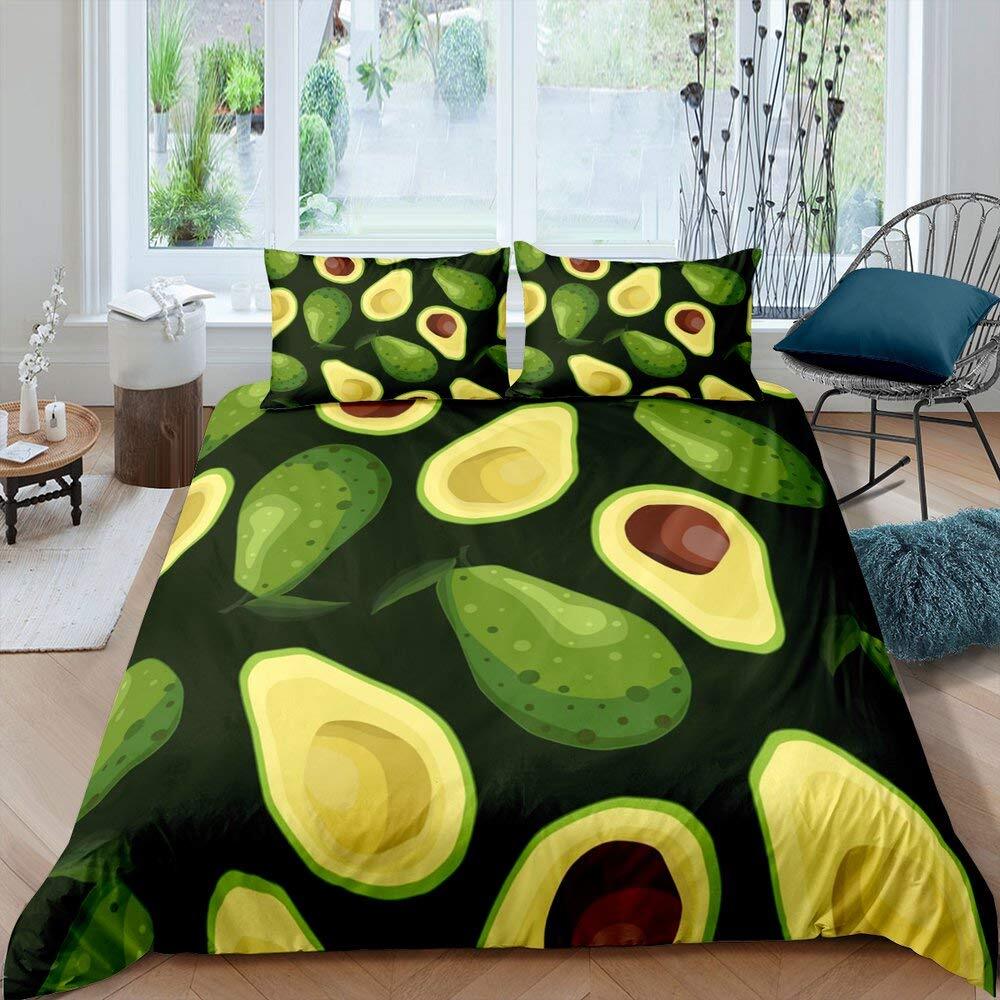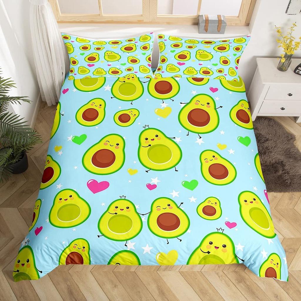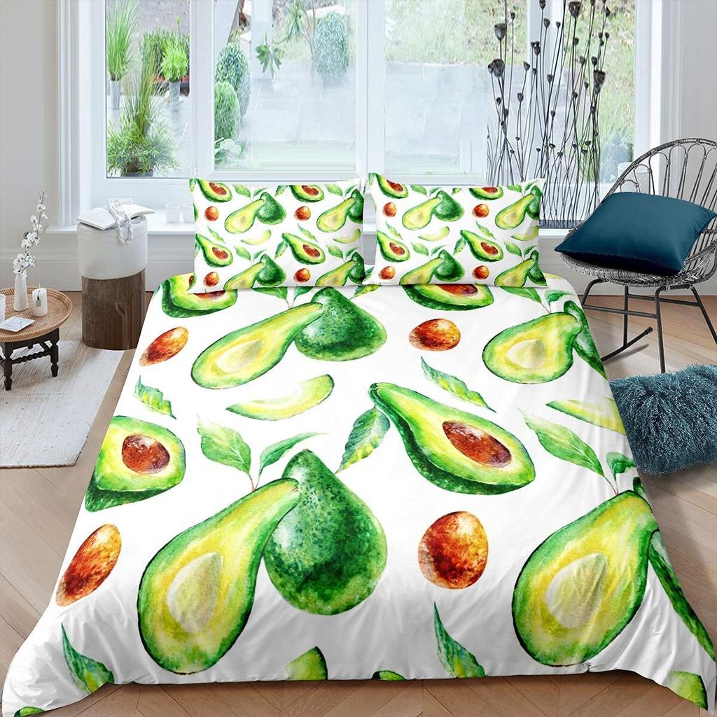 Комплект постельного белья с фруктами, милый мультяшный декор в виде авокадо, комплект из 3 предметов постельного белья с 2 наволочками, размер Queen King, полный размер, цвет паприка зеленый