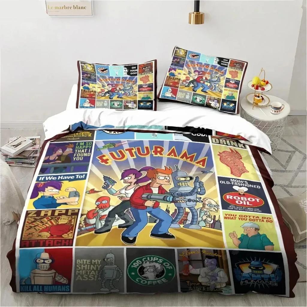 Мультяшный комплект постельного белья Футурама Бендер Пододеяльник Комплект для кровати Покрывало Наволочка Одеяло Кинг Размер Королева Размер Мальчики Взрослый Комплект постельного белья