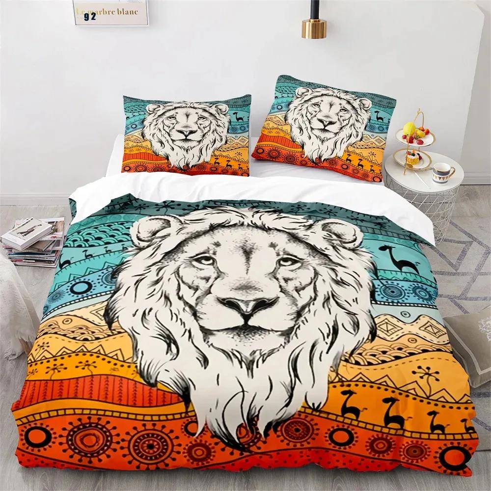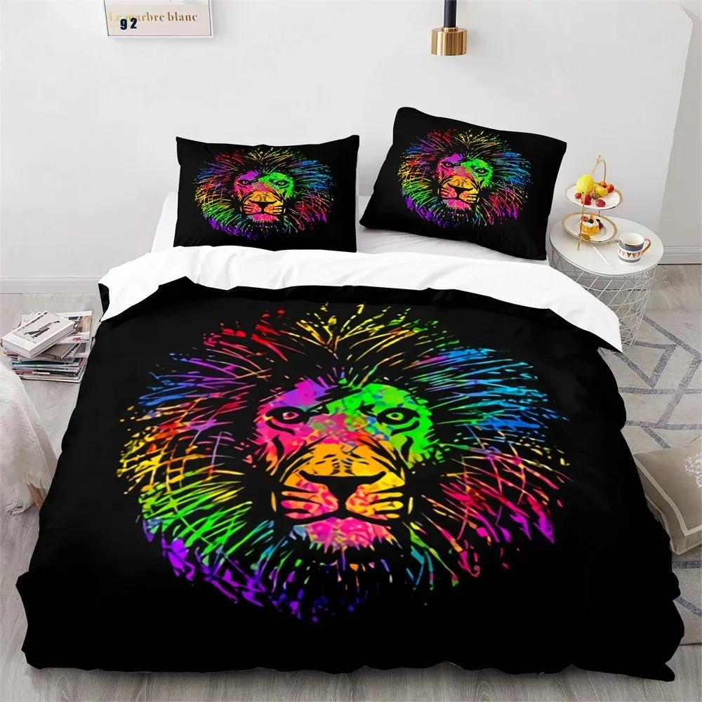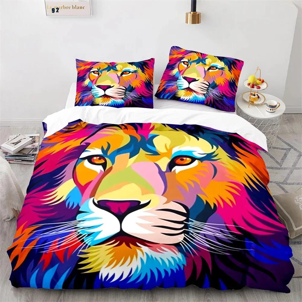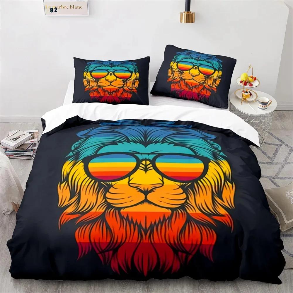 Комплект постельного белья «Лев» с 3D-принтом «Дикие животные в очках» размера «king-size» для взрослых и подростков, комплект постельного белья из полиэстера