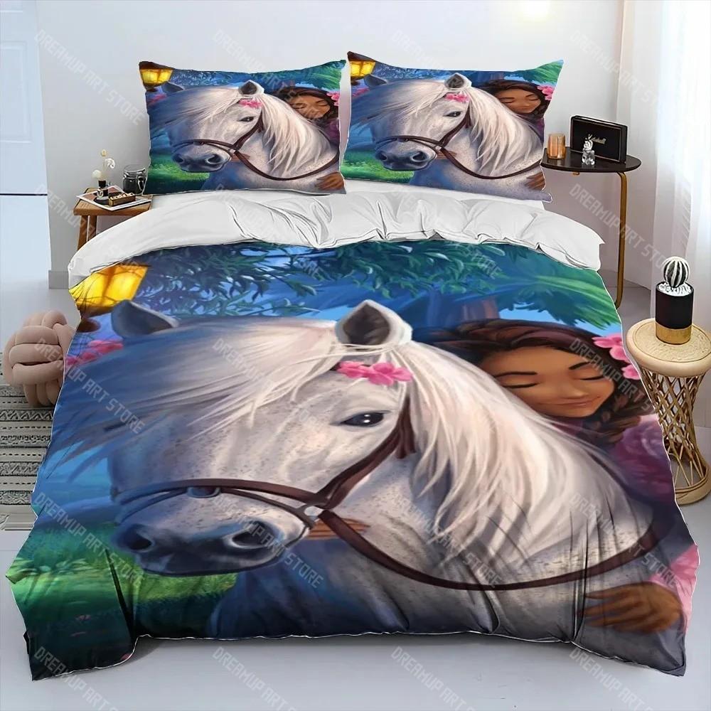 Мультяшный комплект пододеяльника с лошадьми Spirit Riding Free 2_3 предмета для мальчиков и девочек, размер Твин/Квин, пододеяльник, наволочка, постель — купить товар онлайн с бесплатной доставкой по всему миру!