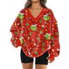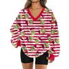 Женский модный пуловер с V-образным вырезом, рождественским принтом, длинным рукавом, повседневный, плюшевый, теплый, с карманом, толстовка, топ