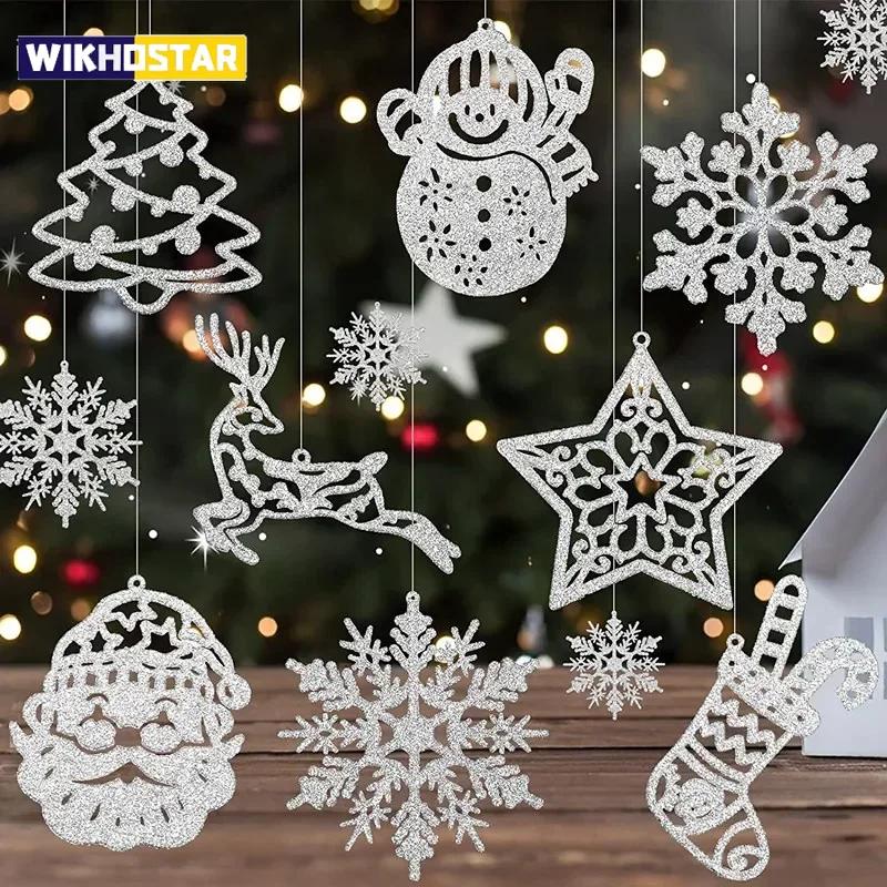20 шт. Рождественские елочные украшения, подвесные украшения, елочные украшения в виде снеговика, оленя, Санты, снежинки для зимней вечеринки в Новый год