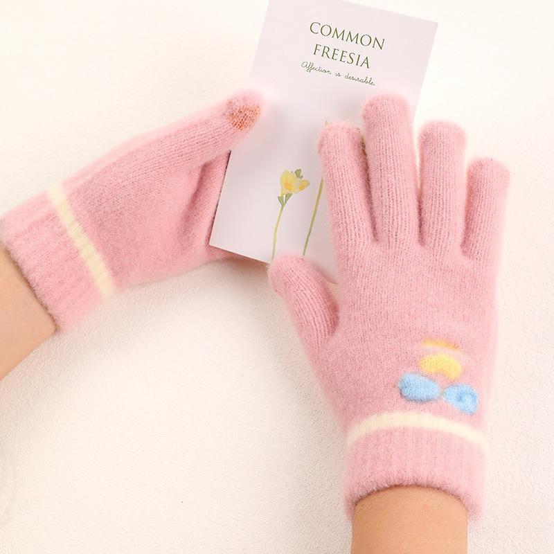 Корейские детские шерстяные перчатки с пятью пальцами унисекс для детей школьного возраста, непродуваемые вязаные зимние варежки