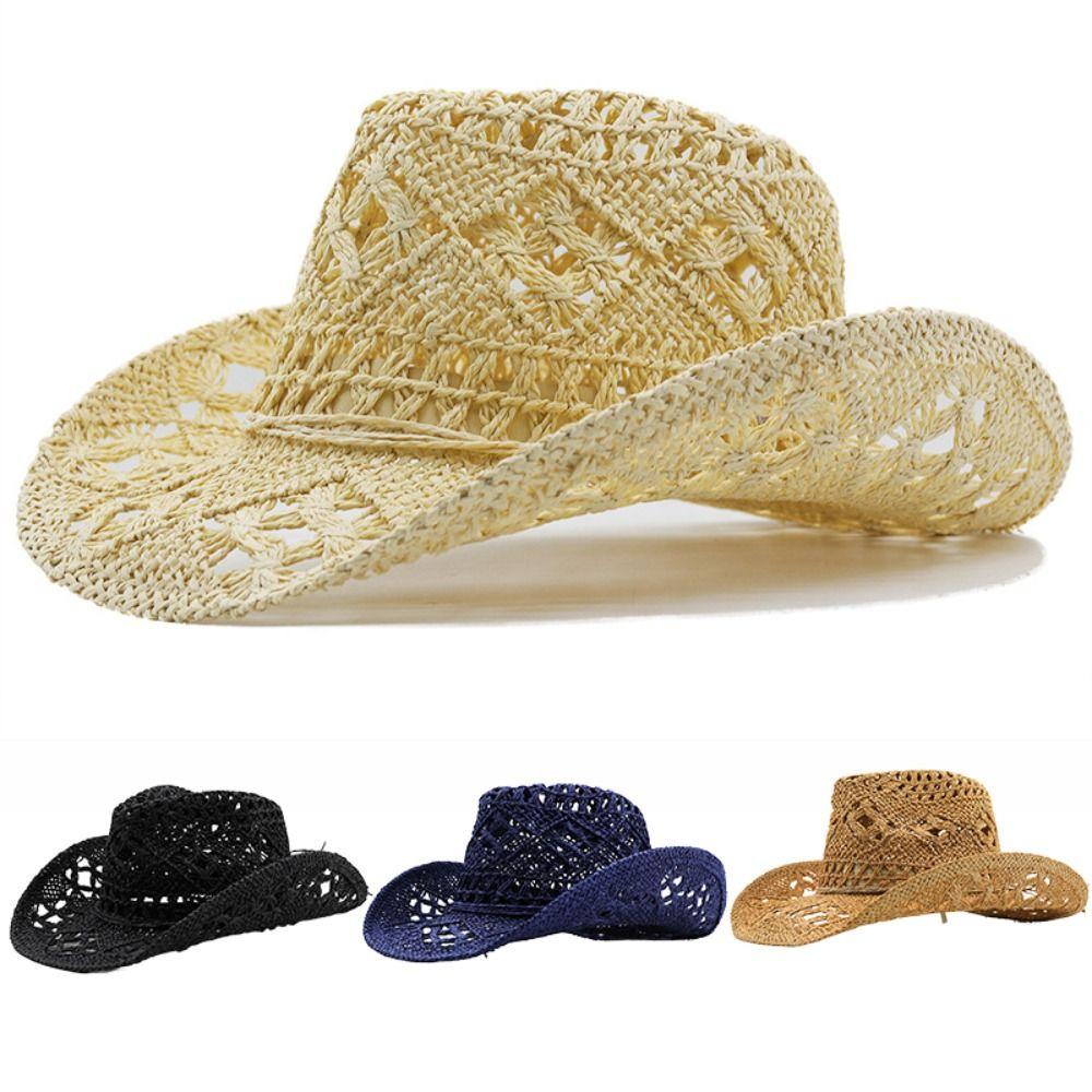 Соломенная пляжная шляпа от солнца с вырезами, сворачиваемая шляпа джаз, повседневная, унисекс, ковбойская шляпа