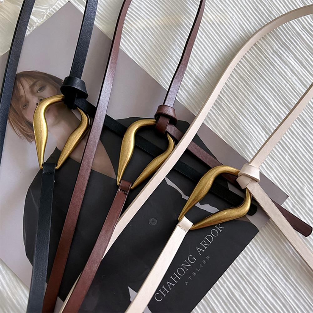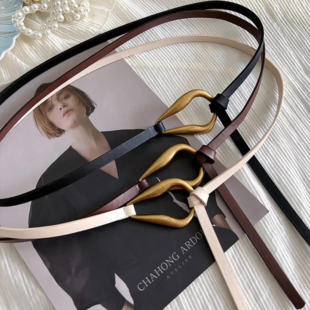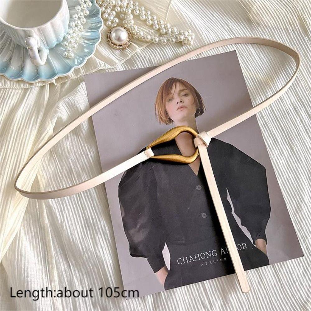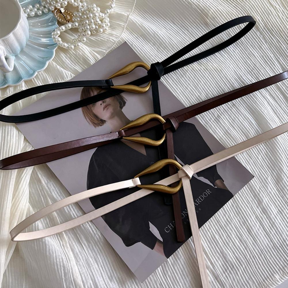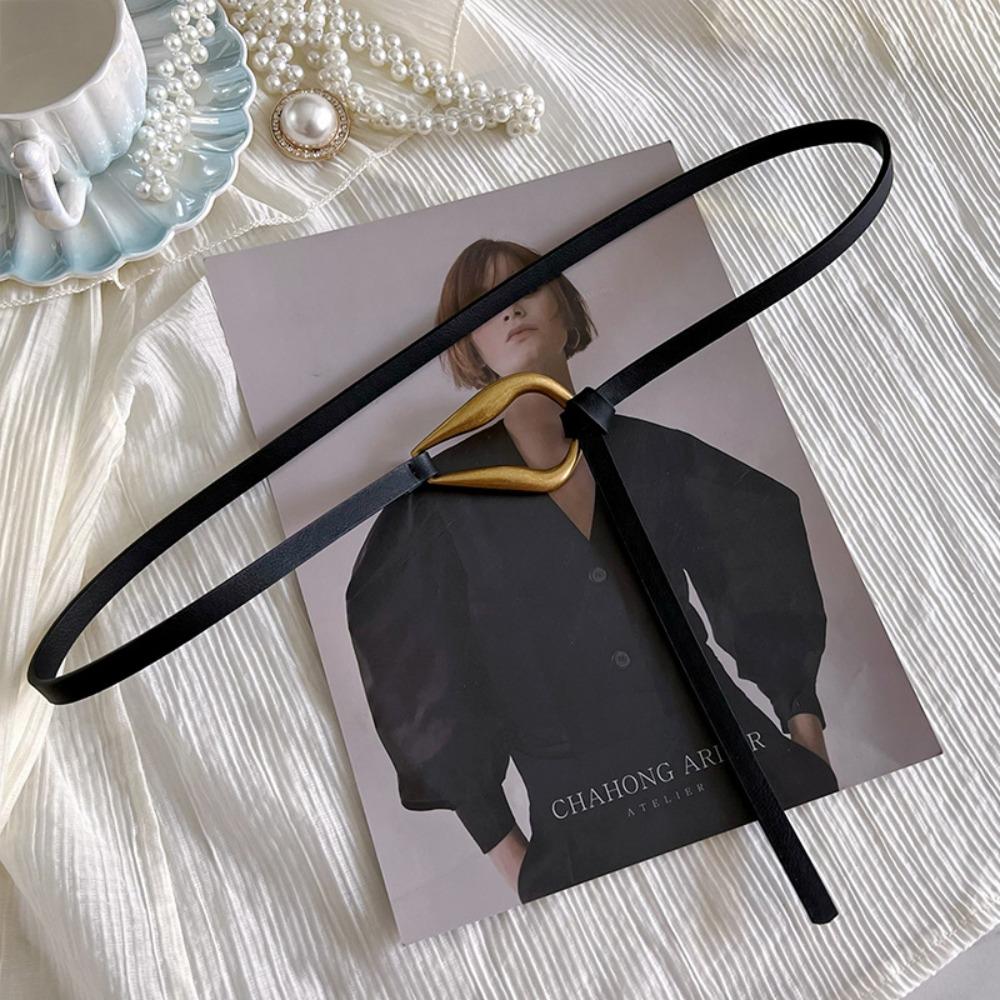 Тонкий ремень без отверстий Металлическая пряжка Поясной ремень Модные аксессуары для платья Женский