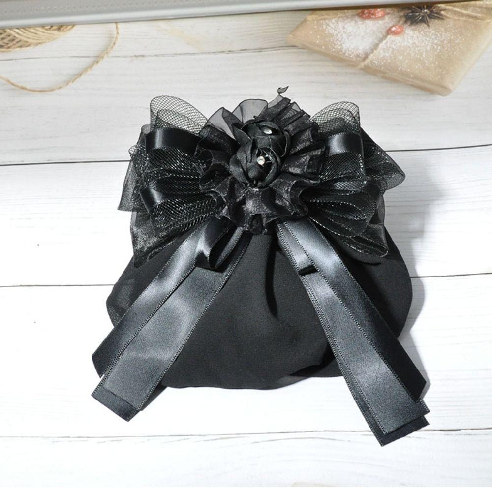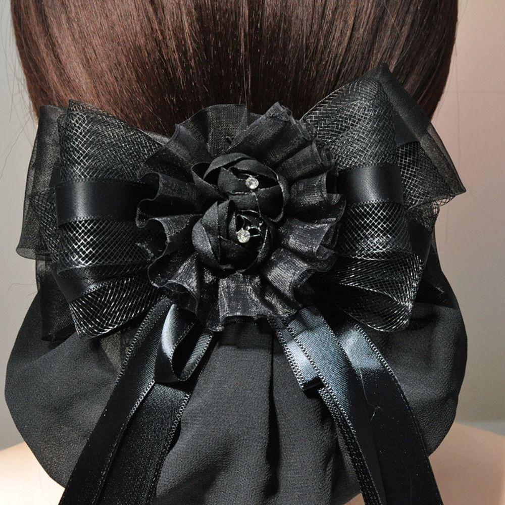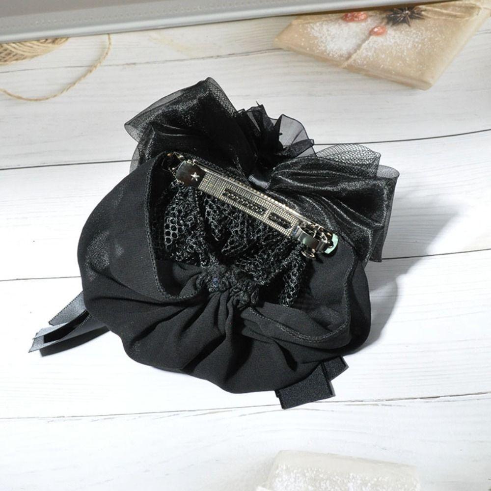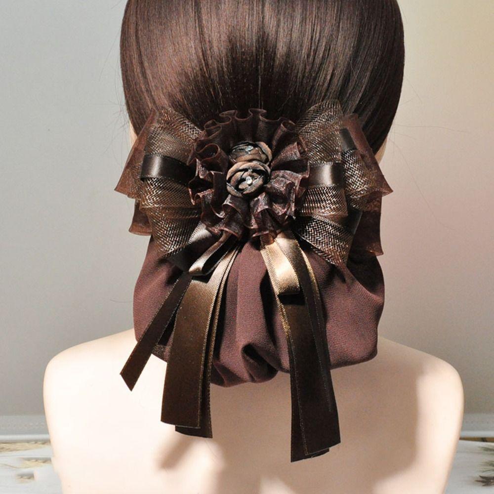 Women Girl Lace Work Hairnet Classic Pearl Barrette Hair Clip Cover For Nurse Bank Catering