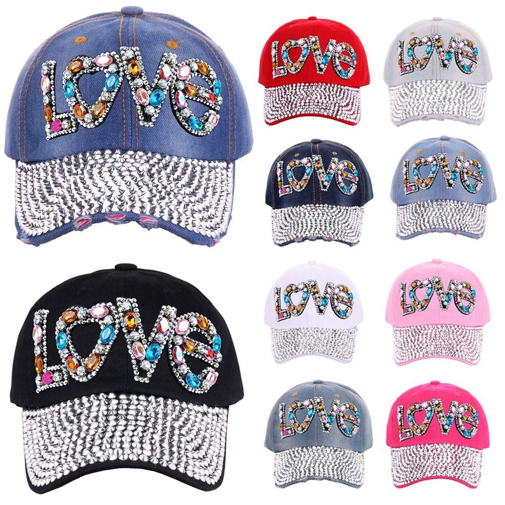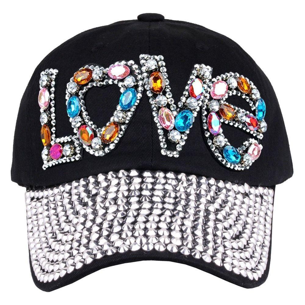 Регулируемые бейсболки со стразами Love Солнцезащитные шляпы Блестящая солнечная шляпа Для женщин девушек