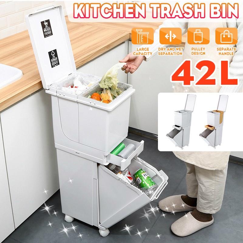 2-слойное 42-литровое кухонное мусорное ведро для раздельного сбора мокрого и сухого мусора, передвижное, для переработки, для хранения мусора, мусорное ведро, урна для мусора, мусорный бак, ПП — купить товар онлайн с бесплатной доставкой по всему миру!