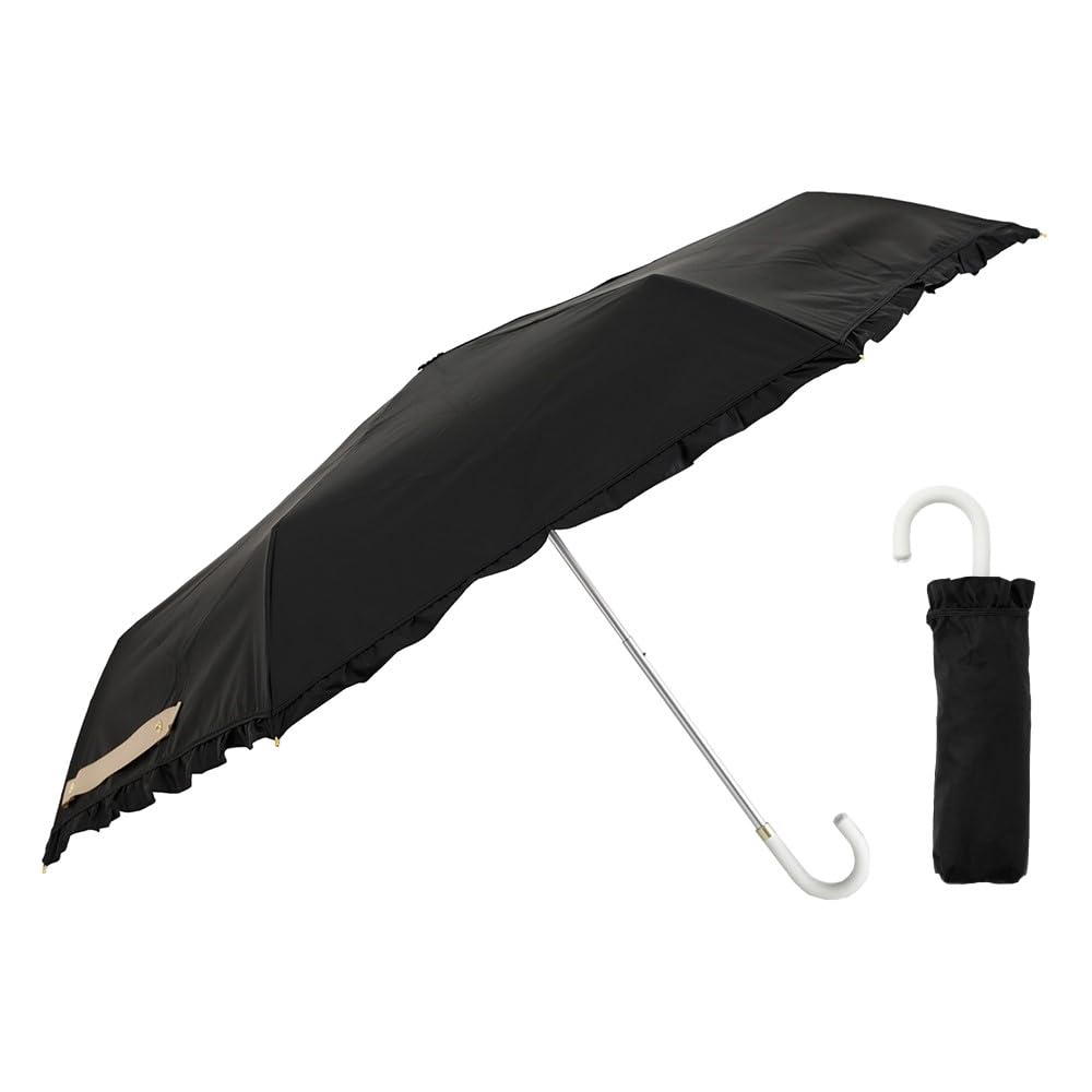 Ogawa Складной УФ Простой Идеальный Подарок для или любой LINEDROPS 57440 Женский Зонт от Солнца, Черный, Защита 99,9%, Водоотталкивающий, Стильный, С оборками, Дизайн,