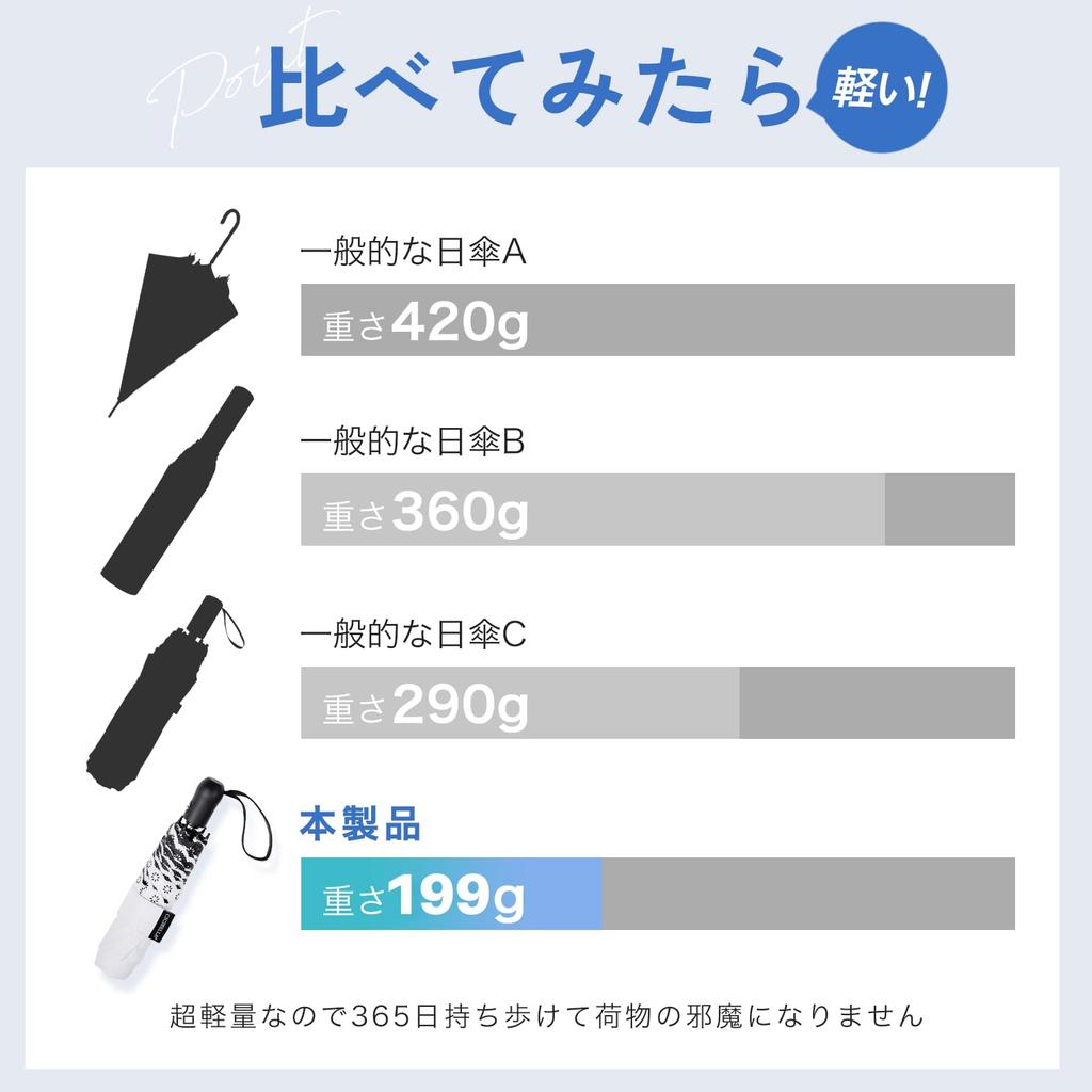 [Сертифицированная защита от УФ-излучения по японскому стандарту] Этот зонт cicibella соответствует японским стандартам JIS 1925 и 1055, обеспечивая 100% защиту от УФ-излучения и полное затенение. Даже на улице в солнечный день вы будете чувствовать себя так же прохладно, как в тени.. Кроме того, его функция автоматического открытия и закрытия и легкий дизайн делают его удобным для повседневного использования.. Этот складной зонт идеально подходит для тех, кто ищет полную тень.