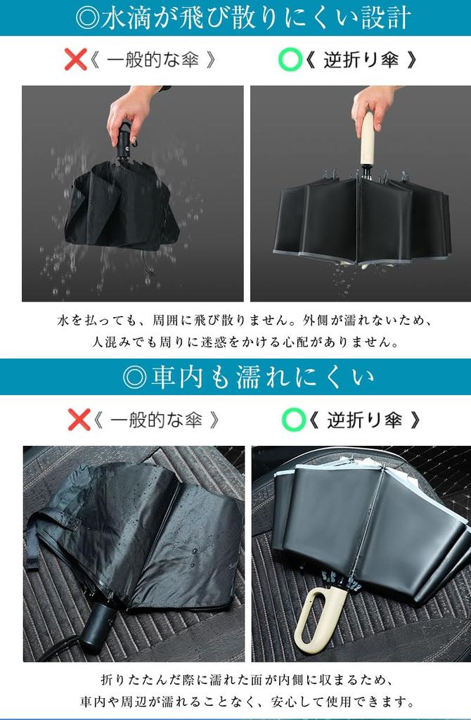[Зонт с обратным складыванием сохраняет вас сухим] Конструкция с обратным складыванием позволяет даже небольшому дождю собираться в капли и быстро высыхать, даже при сильном ветре и проливном дожде. В отличие от обычных зонтов, вам не нужно беспокоиться о том, что дождевая вода попадет на сиденье или пол, когда вы его откроете, поэтому это не побеспокоит окружающих.. Это также очень удобно при посадке и высадке из машины.
