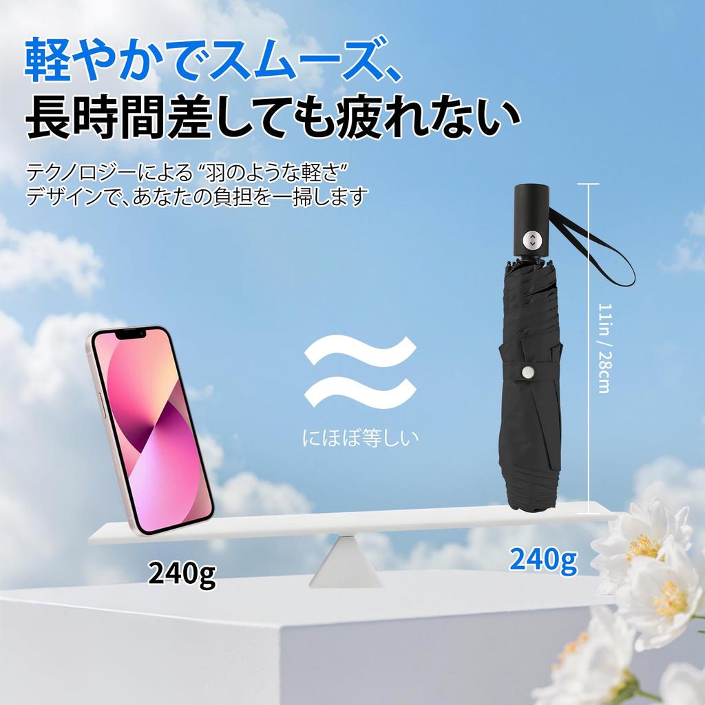 [Сверхлегкий, всего 240 г, и подходит как для солнечных, так и для дождливых дней] Этот зонт на 365 дней идеально подходит для повседневного использования! В комплекте идет специальный чехол для удобного хранения в сумке или кошельке. Это также идеально для хранения в вашей машине. От долгих дождей сезона дождей до сильного летнего солнца, вы можете быть уверены, что этот складной зонт защитит вас от внезапного дождя и УФ-лучей.. Это идеальный зонт для повседневного использования.