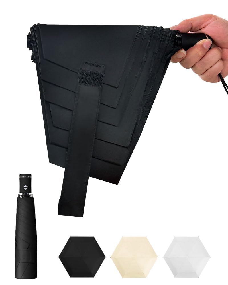 [Ветрозащитный и водоотталкивающий для солнечных и дождливых дней] Защитите свою кожу мощной УФ-защитой в солнечные дни и быстро справьтесь с внезапными ливнями благодаря надежной водонепроницаемости. Новейшая водонепроницаемая ткань и специальная обработка обеспечивают выдающиеся водоотталкивающие характеристики. Ребра изготовлены из материала авиационного класса, который обладает высокой устойчивостью к коррозии и не сломается даже при сильном ветре, демонстрируя невероятную прочность и долговечность.. Даже если он вывернется наизнанку, его можно легко сложить обратно, что делает его надежным партнером для повседневных прогулок.