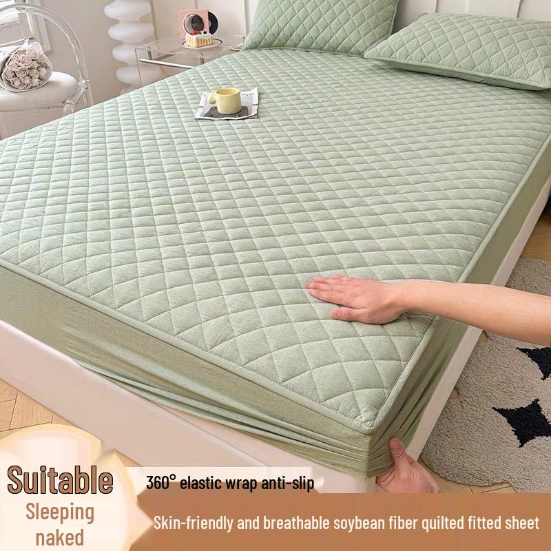 Однотонная стеганая простыня на резинке: Пыленепроницаемый, Пятноустойчивый, Моющийся Наматрасник