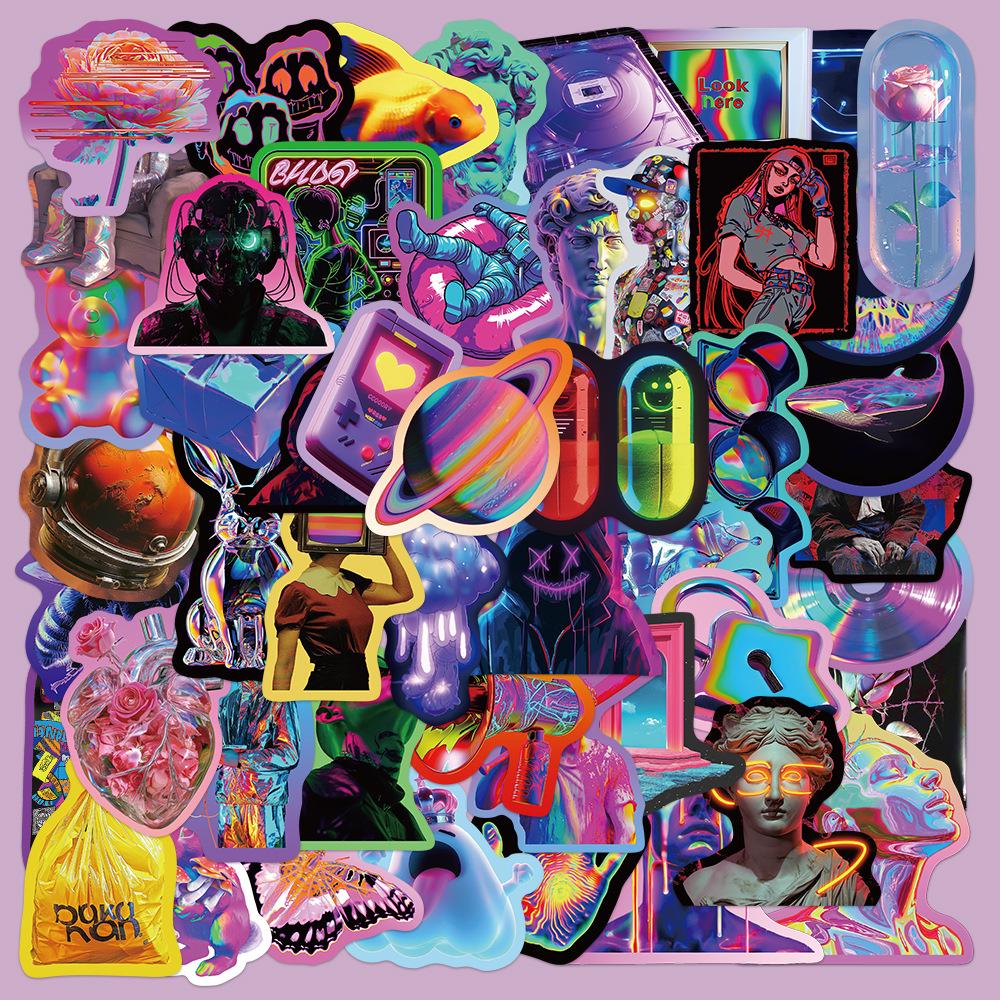 50 Cyberpunk Laser Stickers for Suitcases, Laptops, Guitars, Skateboards - DIY Decoration Set