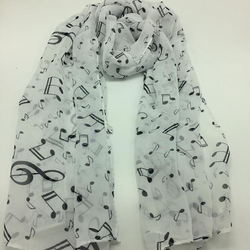 Женские летние шарфы, шифоновый шарф с принтом музыкальных нот, мягкие шарфы, высокое качество, потрясающая эластичность