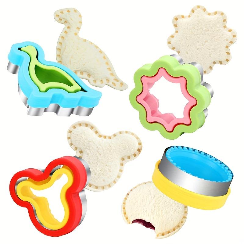 Набор для вырезания и запаивания сэндвичей своими руками - Формы для печенья - Формы: Цветок, Динозавр, Круг - Предметы первой необходимости для ланч-бокса к школе