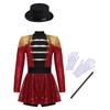 Комплект циркового костюма дрессировщика для девочек Боди с пайетками с длинным рукавом и кисточками на плечах, Застежка-молния сзади, Шляпа, Волшебная палочка, Перчатки