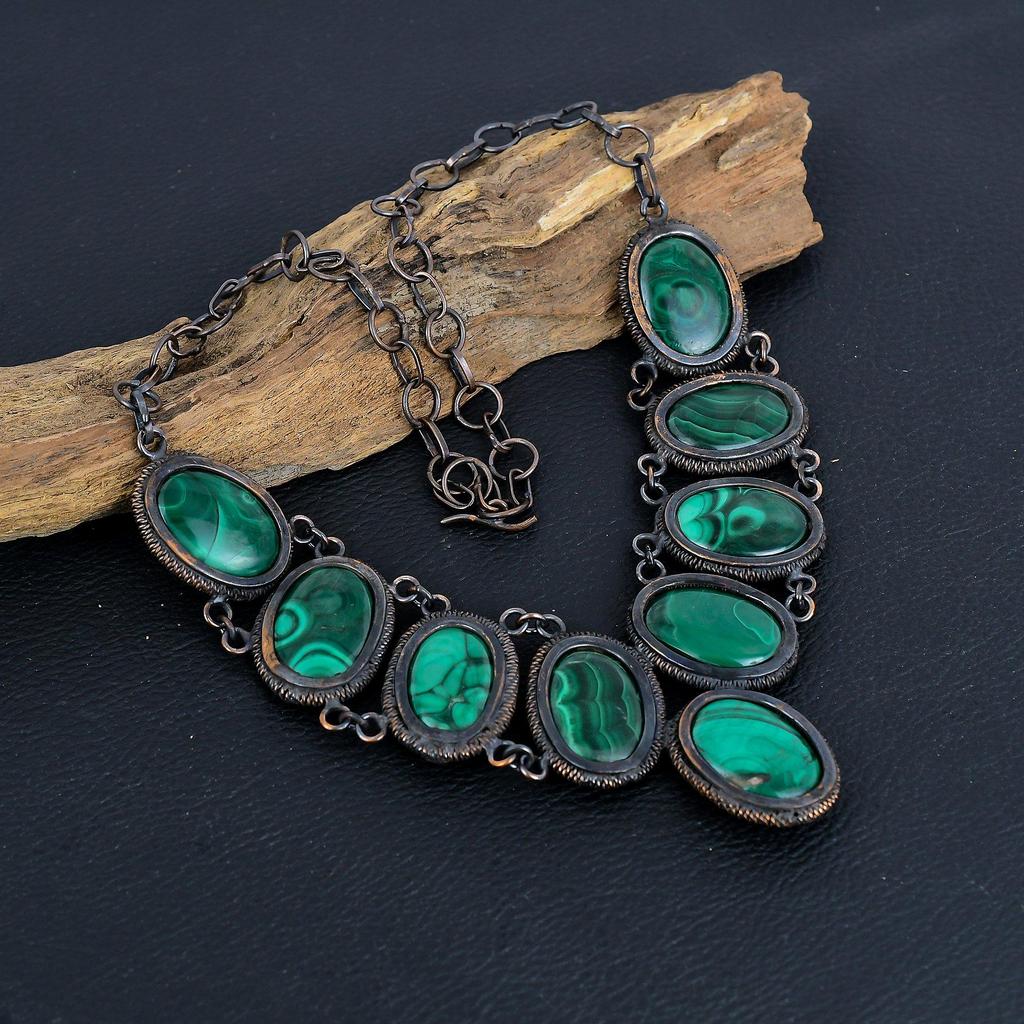 Малахитовое ожерелье, Ювелирные изделия из драгоценных камней, обернутые медной проволокой 999 пробы, Ожерелье ручной работы, Удивительные украшения, Подарок для нее
