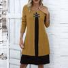 Женское цельное платье с цветными блоками, круглым вырезом, длинными рукавами и застежкой на пуговицы, повседневное элегантное платье