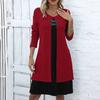Женское цельное платье с цветными блоками, круглым вырезом, длинными рукавами и застежкой на пуговицы, повседневное элегантное платье — купить товар онлайн с бесплатной доставкой по всему миру!