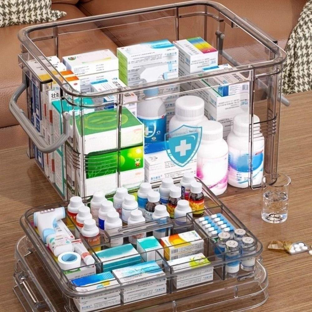 Пластиковый ящик для хранения лекарств, двухслойный, многофункциональный, ящик для экстренных случаев, бытовой