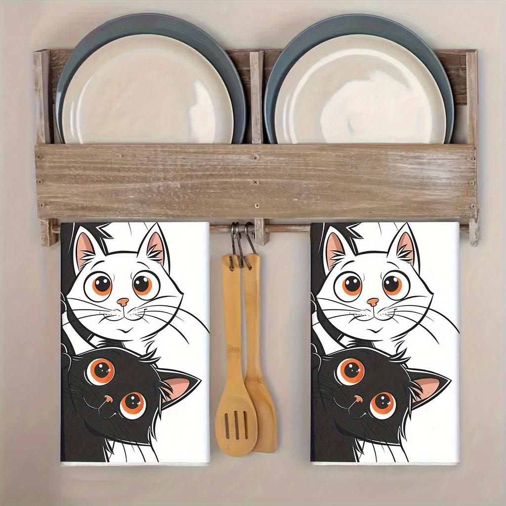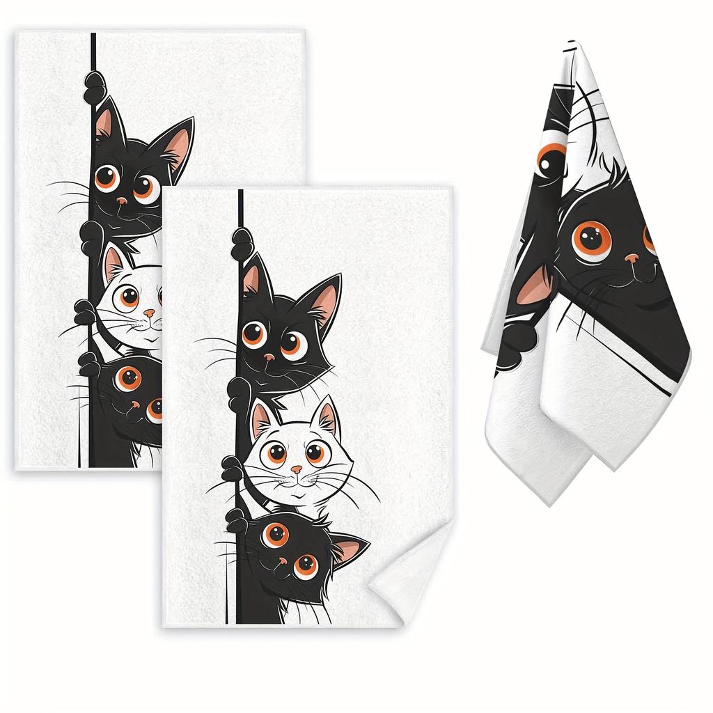 1/2 шт., Кухонное полотенце с кошкой, Мягкие полотенца для рук с кошачьим узором - Легко чистящиеся кухонные и ванные салфетки для мытья посуды для праздничного декора.