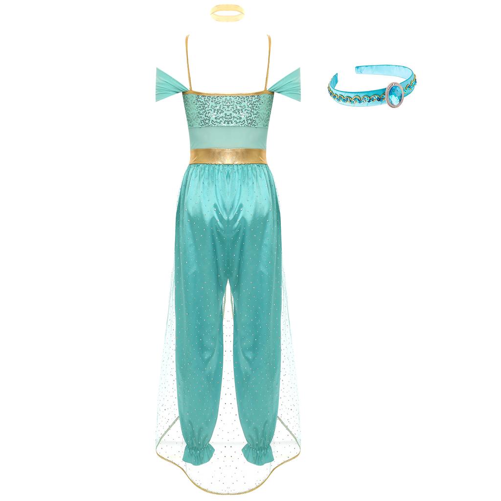 Женский костюм для танца живота, набор «Арабская принцесса», повязка на голову, украшенная драгоценностями, комбинезон с пайетками и чокер