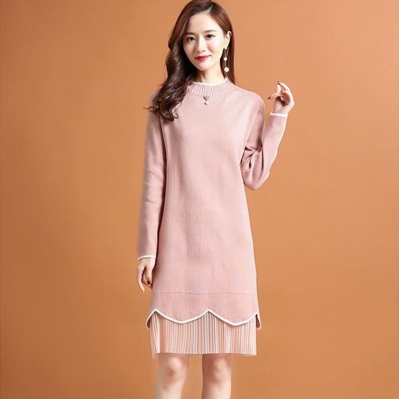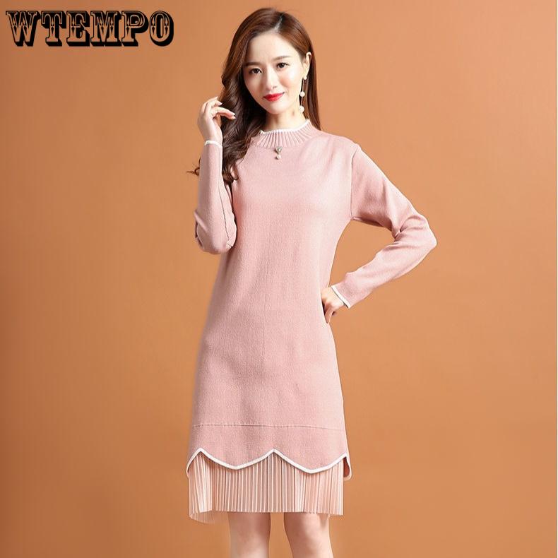 Женское трикотажное платье средней длины на осень и зиму однотонное свободное платье-свитер