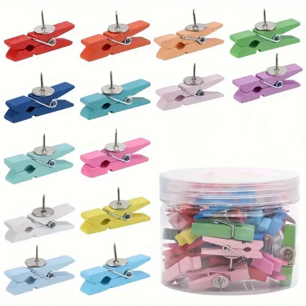 50 шт. Пастельные кнопки-гвоздики с деревянными прищепками - Цветные канцелярские кнопки для классной комнаты, офиса, домашних досок объявлений|Яркие кнопки-гвоздики