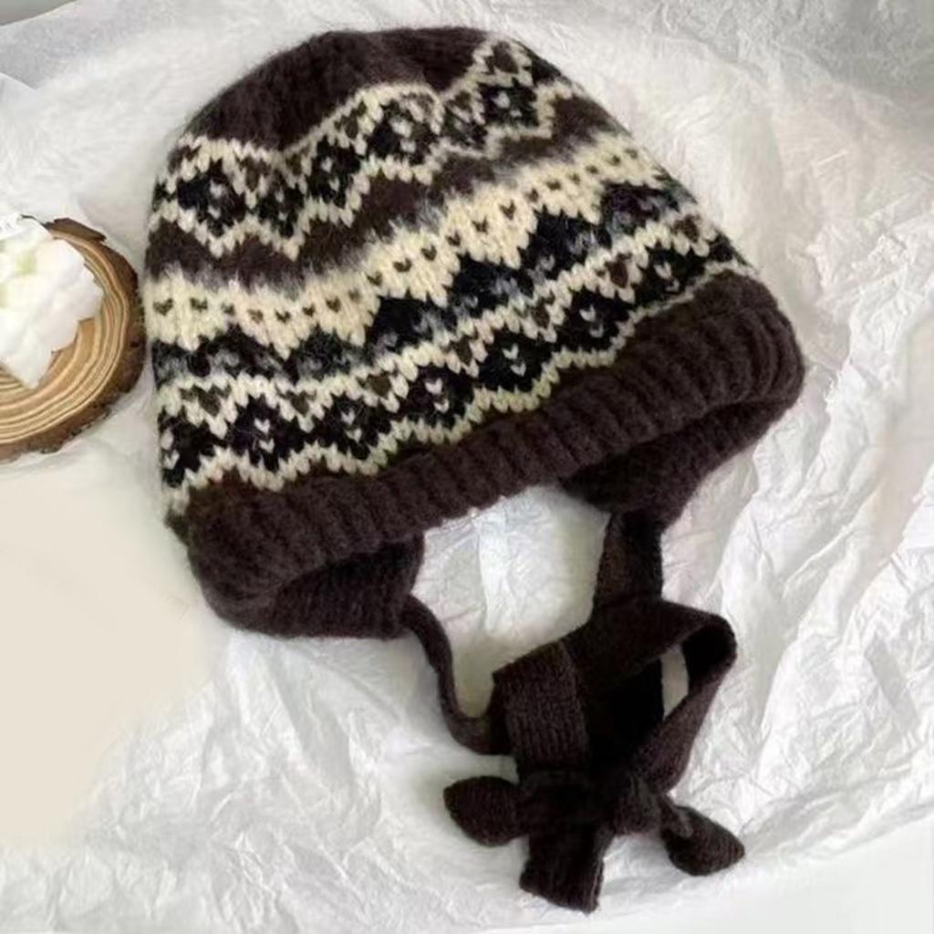 Этнический узор Шапка-ушанка Вязаные шапки-бини для повседневной носки Взрослая унисекс акриловая шапка-череп для активного отдыха, езды на велосипеде, прогулок