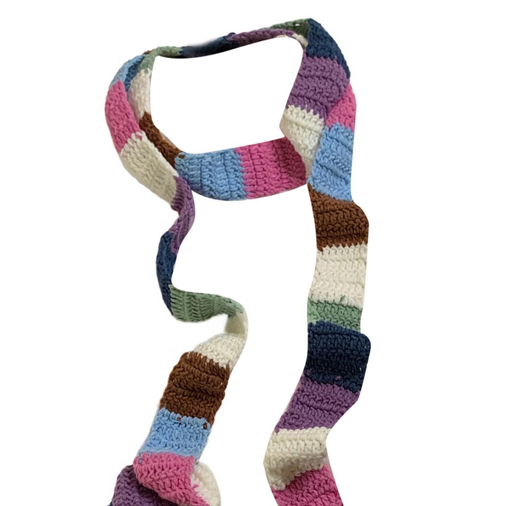 Женский красочный полосатый шарф вязаный шерстяной теплый контрастный длинный узкий шарф сосиска тонкий шарф зимний шейный платок