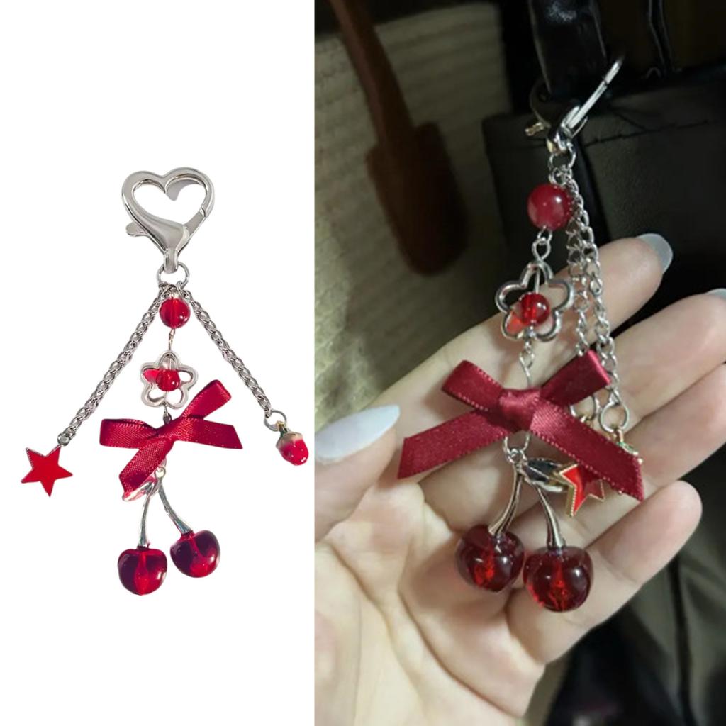 Прекрасный кулон-вишенка, брелок-бантик для женщин, креативный декор, брелок для влюбленных, для сумки, Y2K, держатель для ключей, шарм для сумки