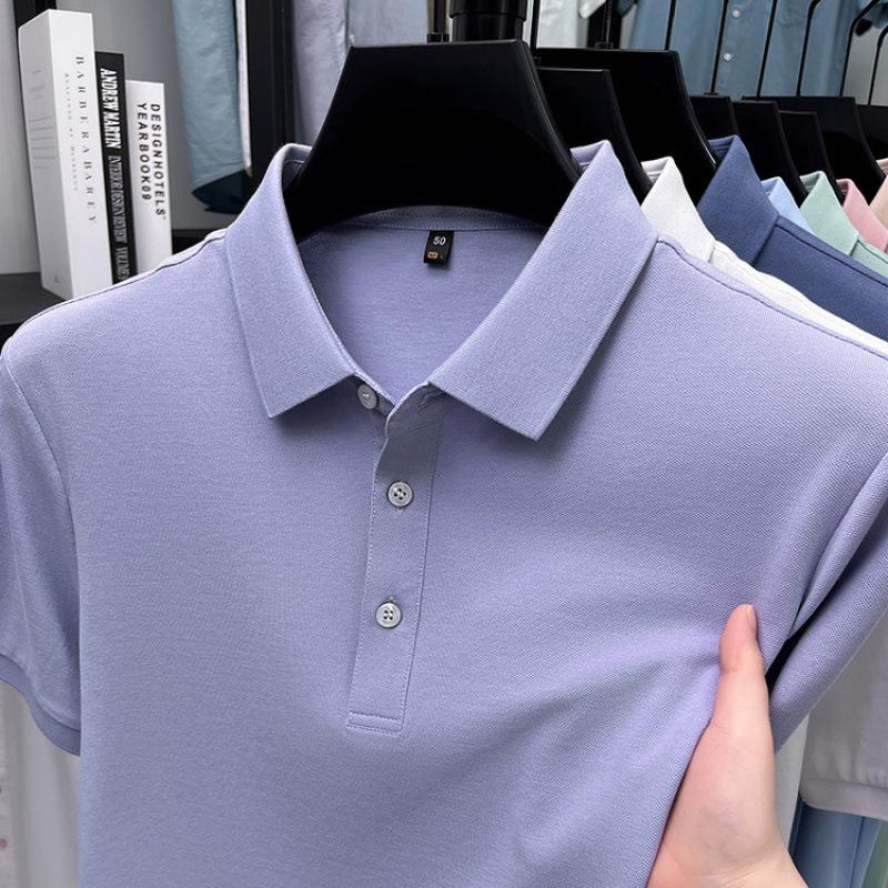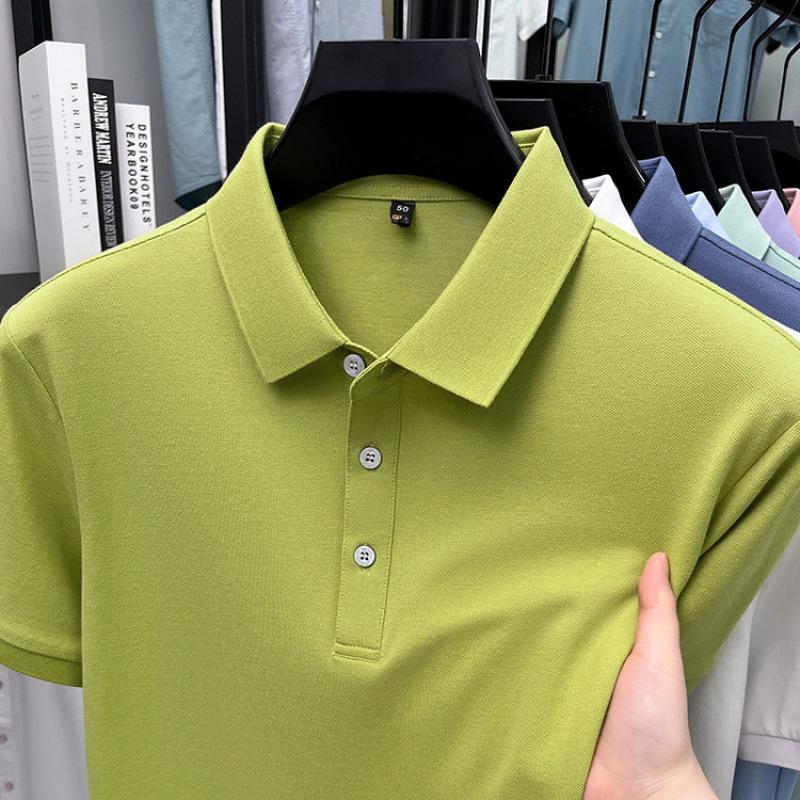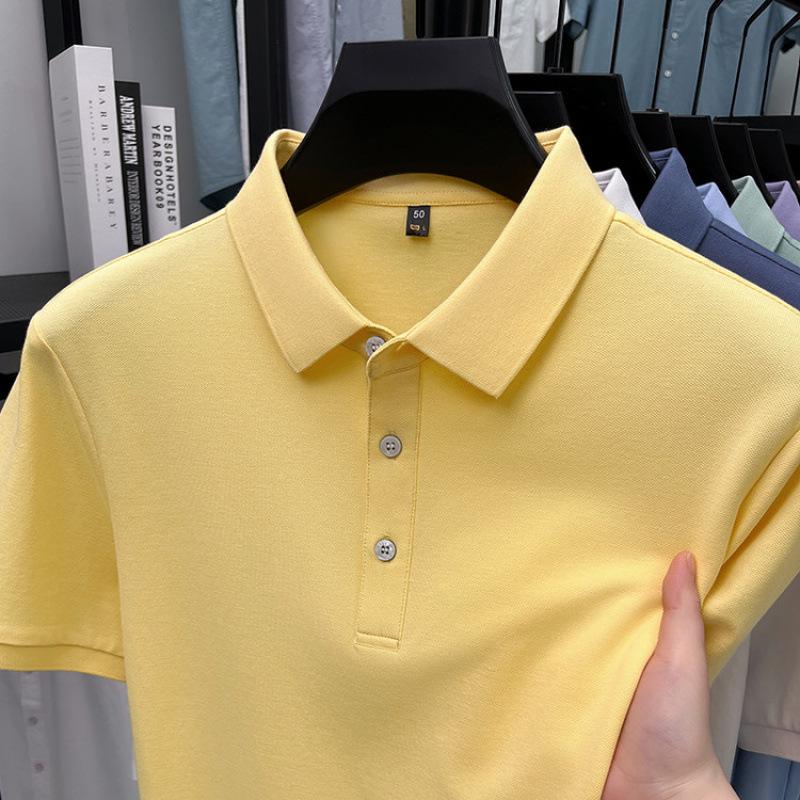 Мужская рубашка с коротким рукавом и отложным воротником - Мерсеризованный хлопок, 16 однотонных цветов, Прямой крой для зрелого стиля