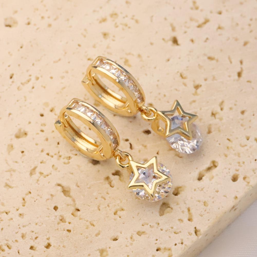 1 пара изысканных серег-подвесок с синтетическим цирконием и пятиконечной звездой для женщин, золотые серьги, ювелирные изделия, аксессуары для свадебной вечеринки