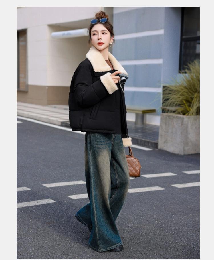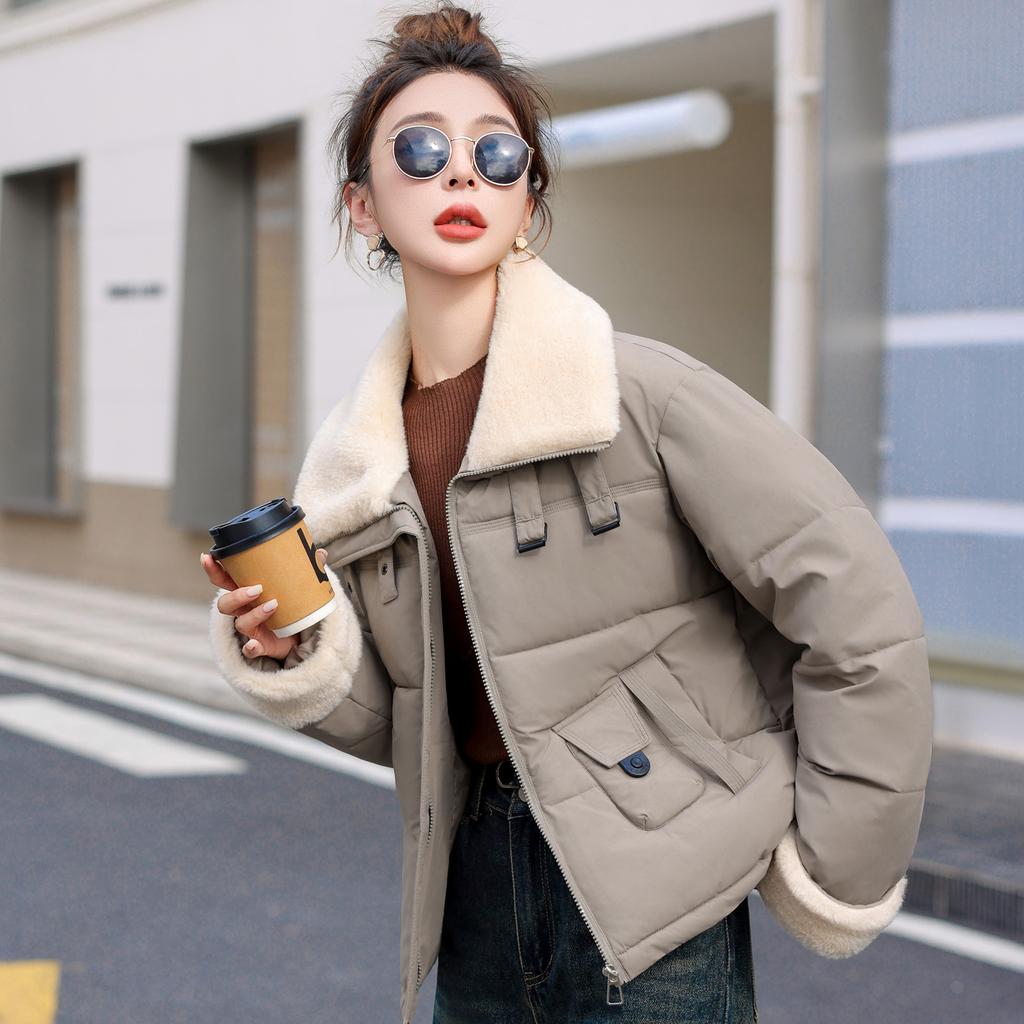Женская куртка из искусственной шерсти с лацканами, на пуху, с хлопковой подкладкой