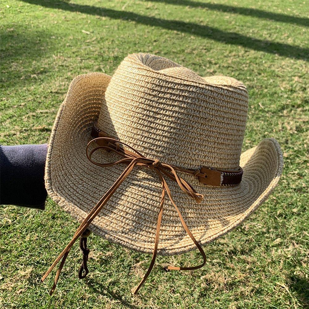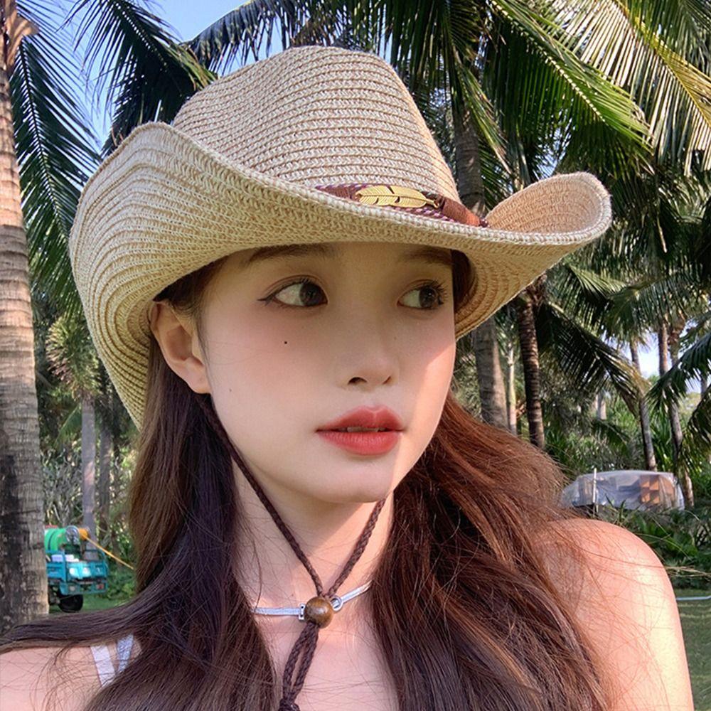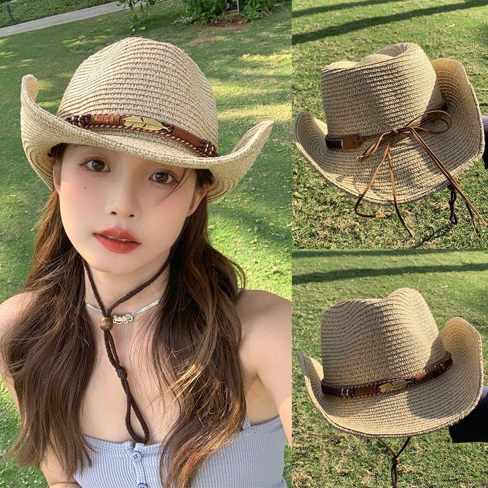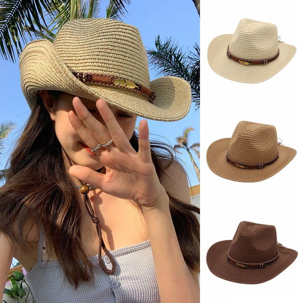 Широкополые ковбойские шляпы в западном стиле Летняя солнцезащитная кепка с козырьком Модная соломенная шляпа ковбойки Унисекс