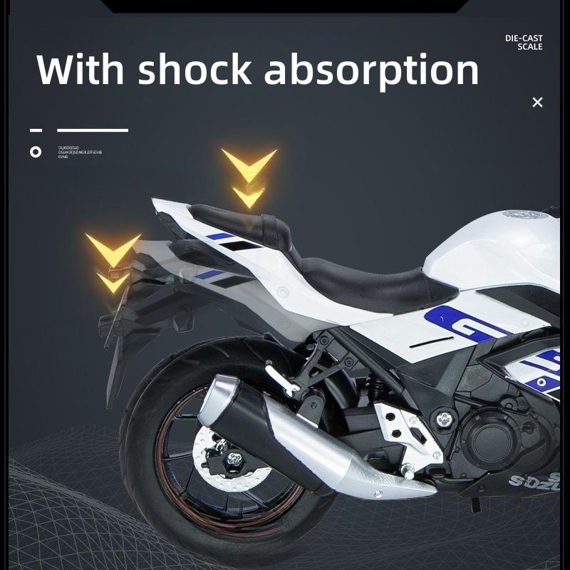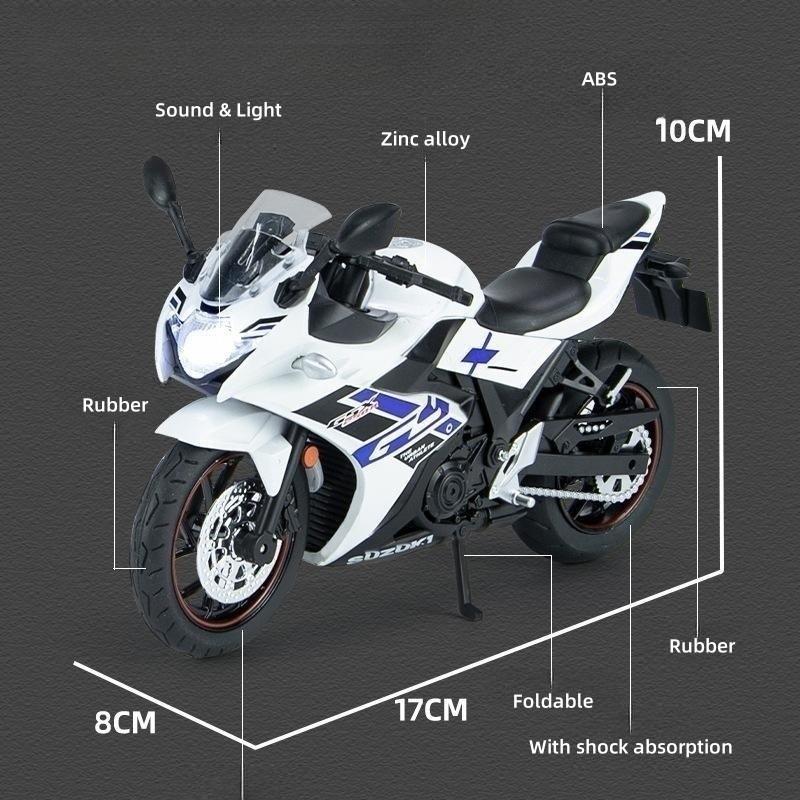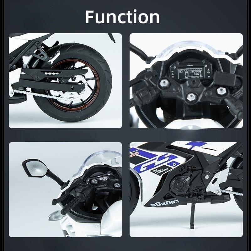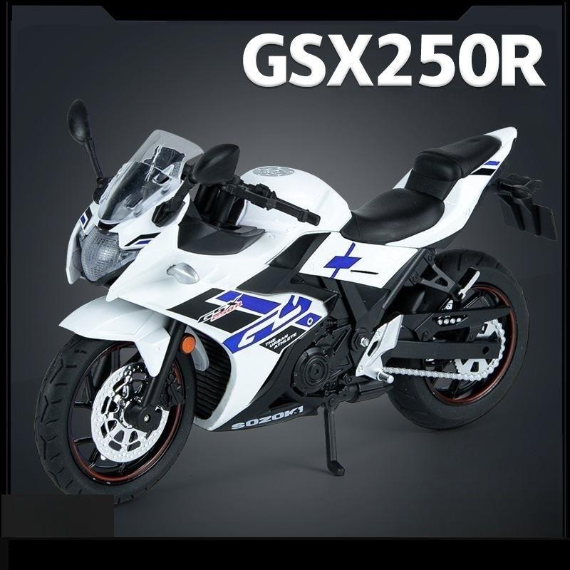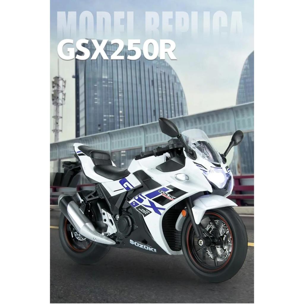1/12 Suzuki GSX-250R Игрушечный мотоцикл Миниатюрная модель Внедорожный мотоцикл Гоночный Звук и свет Литой коллекционный Подарок Мальчику