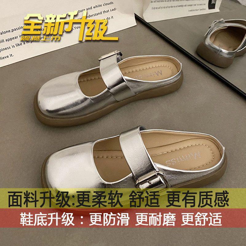 Французская ретро сумка голова серебристые полушлепанцы женские 2025 новые мягкая подошва плоская подошва шлепанцы на один педаль женские летняя одежда