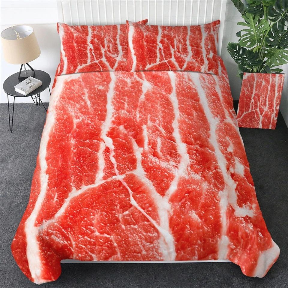Еда Говядина Комплект постельного белья 3D Свежее мясо Пододеяльник Кинг/Квин Сайз Вкусные морепродукты Сашими Голень Стейк Реалистичный Пододеяльник