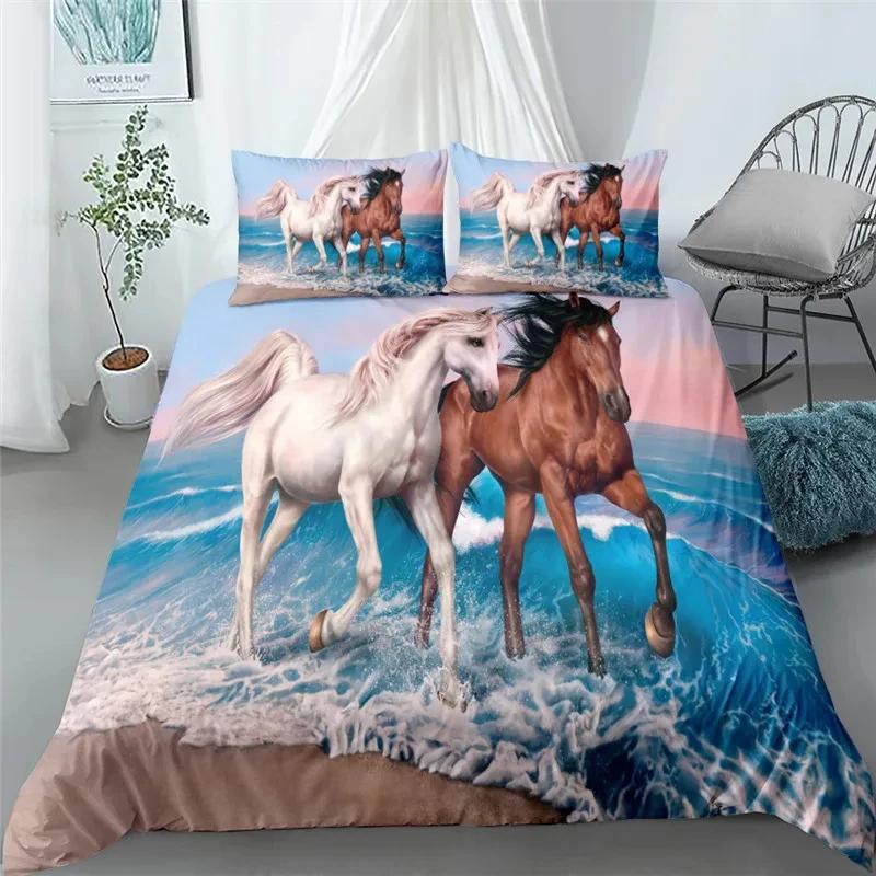 Постельное белье с 3D-рисунком бегущей лошади, комплект кинг, квин, двуспальный, полуторный, твин, одинарный размер, комплект постельного белья размера Твин для мальчиков, подростков, взрослых, теннисная ракетка