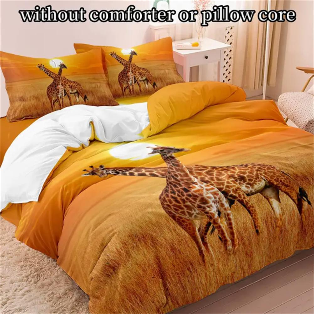 Комплект пододеяльника с 3D-принтом жирафа и наволочками, мягкий всесезонный полиэстеровый комплект постельного белья, декор спальни на тему животных с молнией