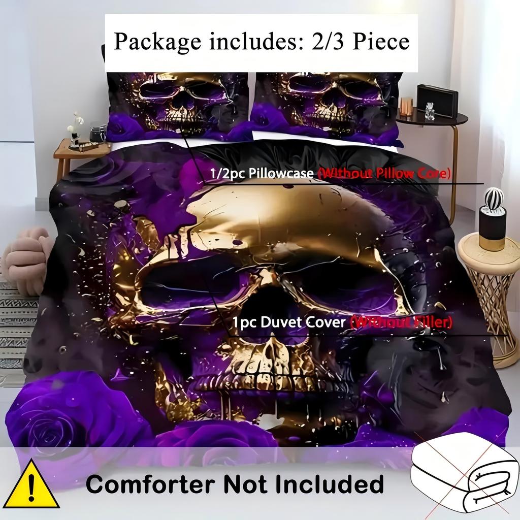 Фиолетовая Роза Золотой Череп Узор 3D Принт Пододеяльник Хэллоуин Готический Стиль Комплект Постельного Белья с Наволочкой Полиэстер Чехол для Одеяла