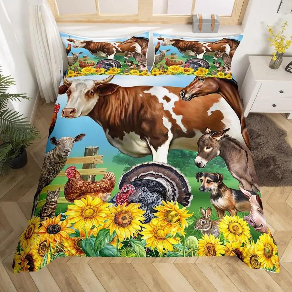 Постельное белье с коровьим принтом, комплекты одеял HD, пододеяльник, наволочка, детский постельный комплект для мальчика, девочки, декор для дома, спальни, 140x200см